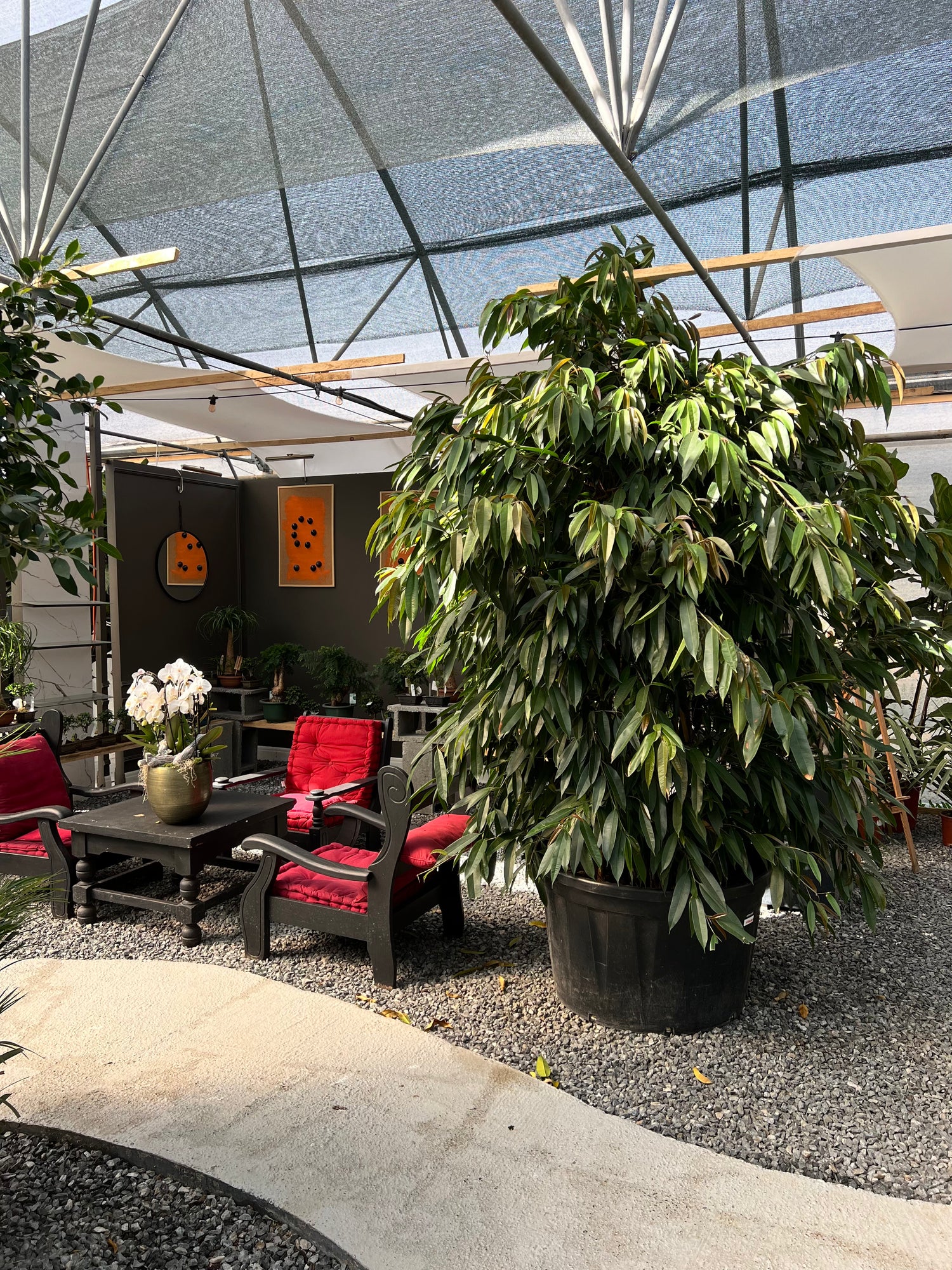 - Ghiveci: Alegeți un ghiveci de dimensiuni mari, realizat din materiale durabile și estetice (ceramică, piatră naturală, lemn tratat), cu un design modern și elegant, care să se potrivească cu stilul interiorului. Asigurați-vă că ghiveciul este stabil și are o capacitate portantă adecvată.