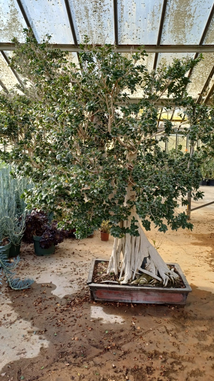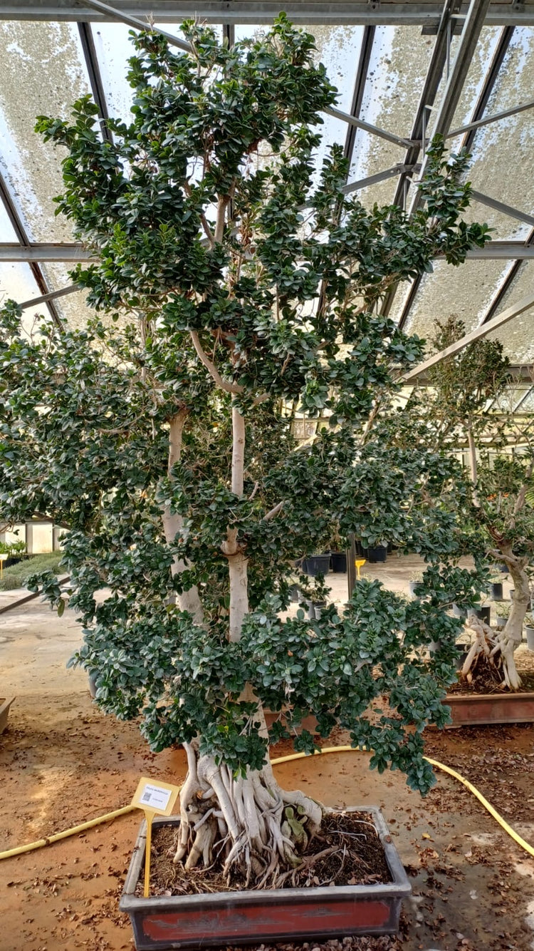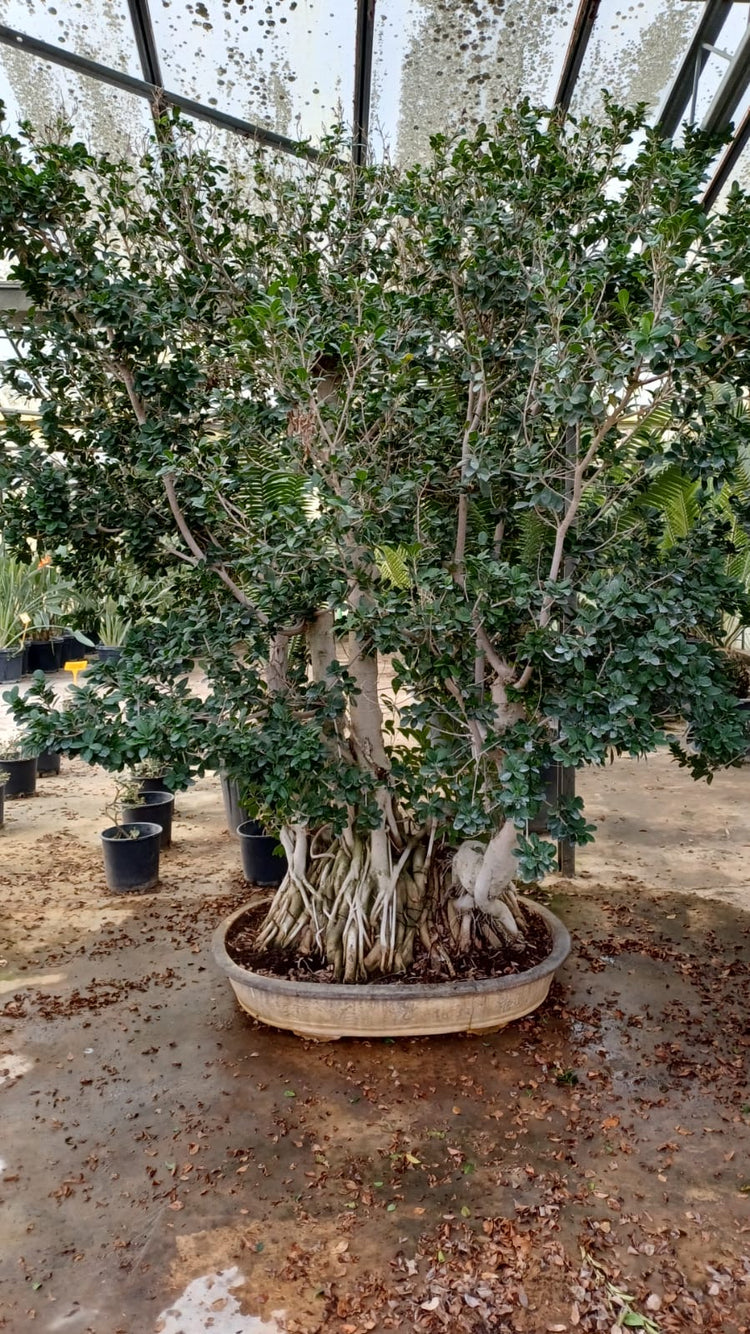 - Aspect: Este un arbore cu frunze persistente, cunoscut pentru coroana sa densă și frunzele ovale, lucioase, de culoare verde închis. La dimensiunea de 300 cm, va fi un punct focal impresionant în orice spațiu, cu un trunchi bine dezvoltat și o coroană bogată. Uneori, poate dezvolta și rădăcini aeriene, adăugând un plus de interes vizual.