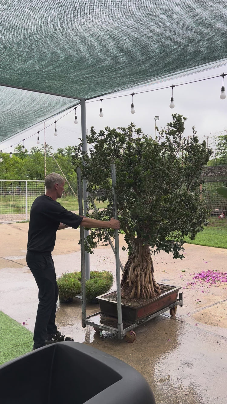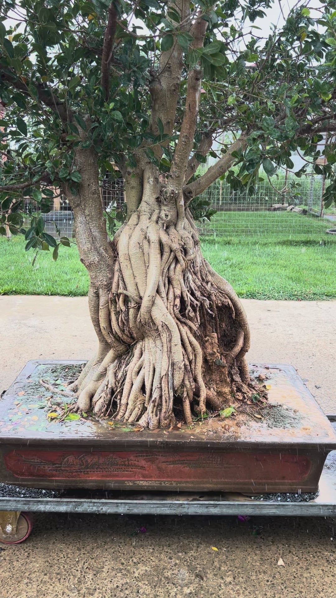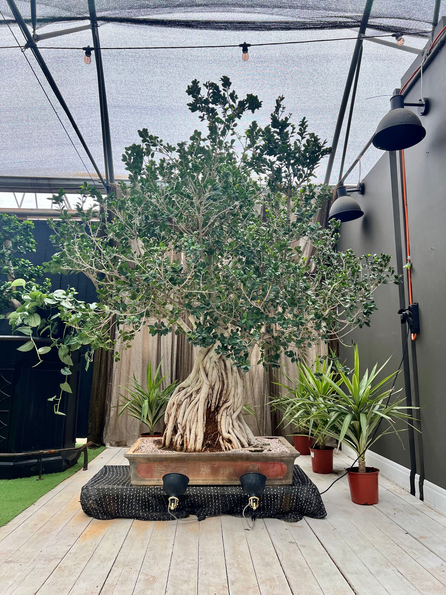- Aspect: Este un arbore cu frunze persistente, cunoscut pentru coroana sa densă și frunzele ovale, lucioase, de culoare verde închis. La dimensiunea de 300 cm, va fi un punct focal impresionant în orice spațiu, cu un trunchi bine dezvoltat și o coroană bogată. Uneori, poate dezvolta și rădăcini aeriene, adăugând un plus de interes vizual.